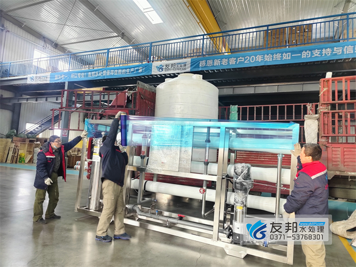 查看詳情+鄭州友邦水處理設(shè)備發(fā)貨日常:焦作萬(wàn)泰鋁業(yè)10噸單級(jí)反滲透設(shè)備發(fā)貨